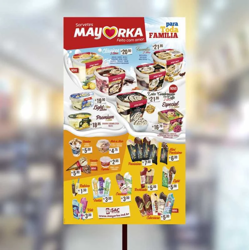 Imagine uma indústria gráfica que imprime cartaz sorvete ponto de venda Paraná? Nós somos esta indústria gráfica. Comumente chamado também de tabela para sorvete, ou banner para sorvete estes materiais são normalmente impressos em grande formato e precisam de técnica e qualidade para sua execução. Sua função é apresentar toda a gama de produtos disponíveis no freezer de cada ponto de venda, sorveteria ou restaurante servido pela marca.