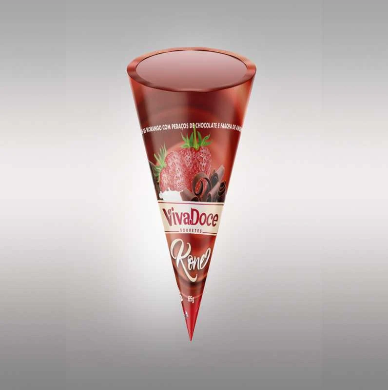 A embalagem em formato de cone também agrega valor estético ao produto, tornando-o mais atrativo e apetitoso.